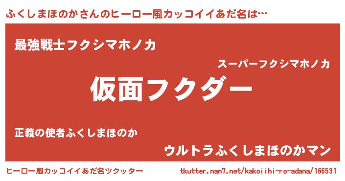 | 意味不明あだ名 | 『めかぶ科ふくしまほのか属』 |