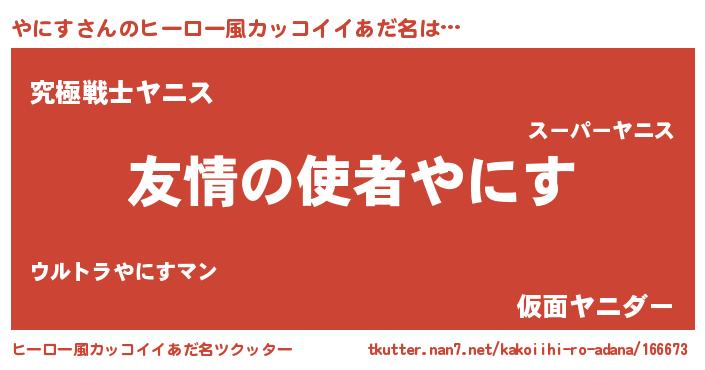| 男性向けラノベタイトル風あだ名 | 『おまえをオタクにしてやるから、俺をやにすにしてくれ! 』 |