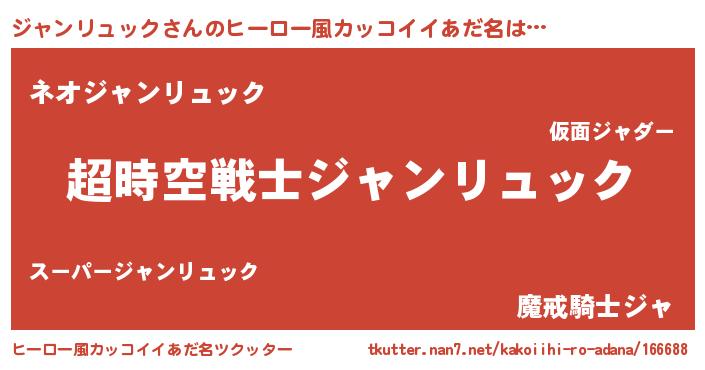 | 女子向けラノベタイトル風あだ名 | 『ジャンリュックなんてお断りですっ。』 |