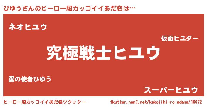 | 女子向けラノベタイトル風あだ名 | 『ひゆうの玉の輿計画!』『闇のひゆう』 |