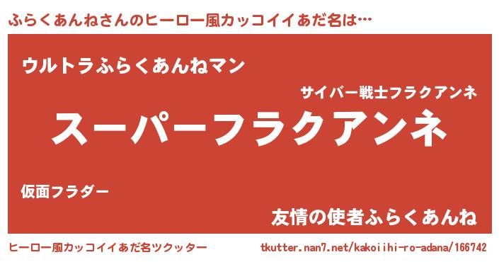 | 肩書あだ名 | 『ふらくあんね社長』『ふらくあんね中尉』 |