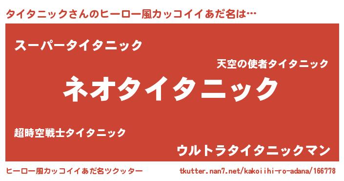 | 伝説のあだ名 | 『聞きしに勝る勇者タイタニック』 |