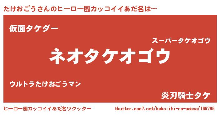 | 胡散臭い通販商品みたいなあだ名 | 『前代未聞の健康食品…その名も「たけおごう」』 |