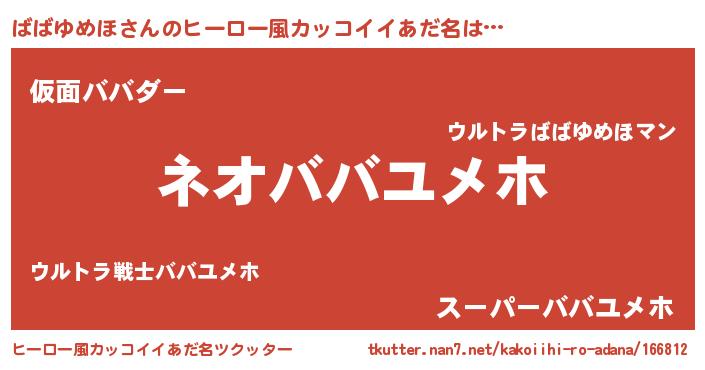 | ヘコむあだ名 | 『ばばゆめほ(笑)』『ばばにゅー』 |
