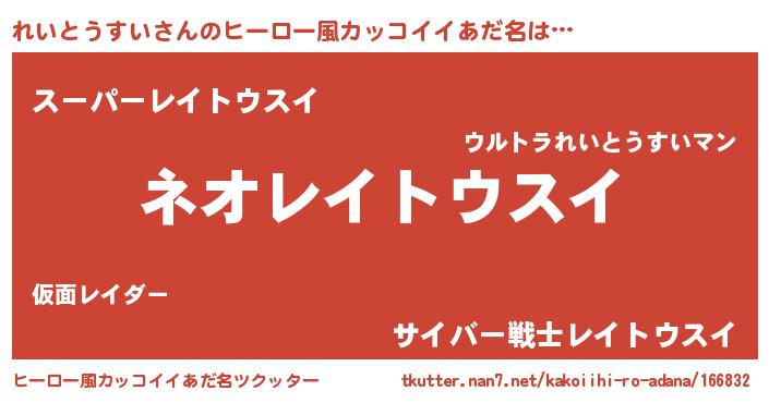 | 男性向けラノベタイトル風あだ名 | 『うちのれいとうすいが世界を掌握している!』 |