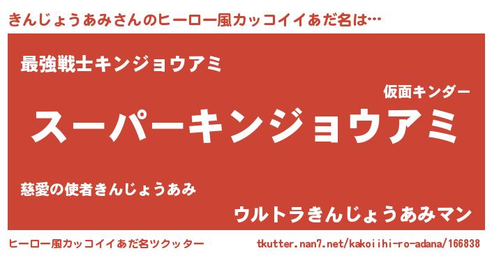 | 男性向けラノベタイトル風あだ名 | 『キンジョウアミアートオンライン』 |