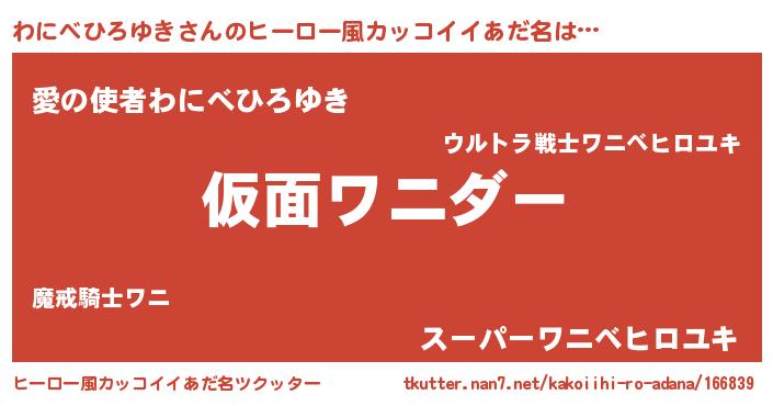 | 男性向けラノベタイトル風あだ名 | 『魔弾の王とわにべひろゆき』 |