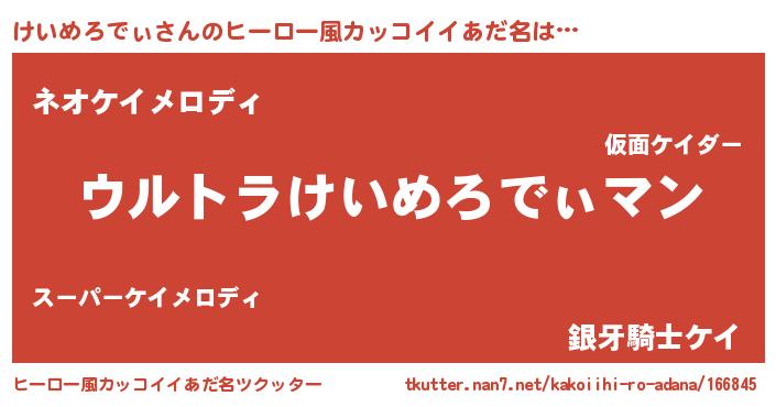 | 意味不明あだ名 | 『けいめろでぃフォーエバー』 |