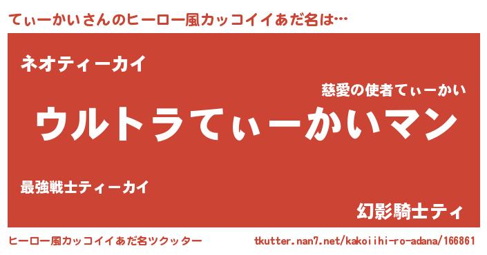 | 男性向けラノベタイトル風あだ名 | 『転生したらてぃーかいだった件』 |