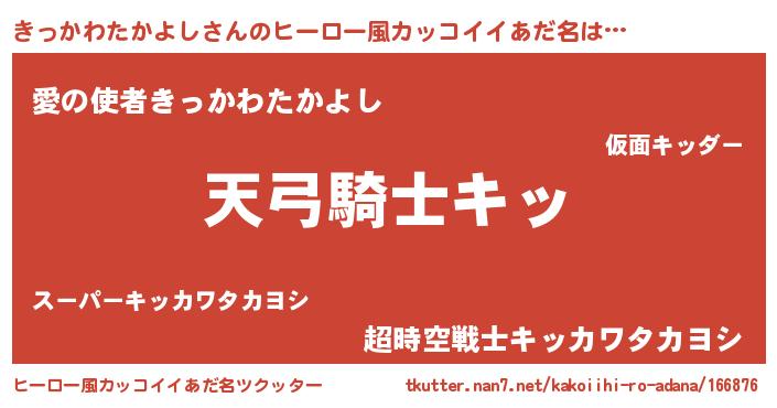 | 男性向けラノベタイトル風あだ名 | 『きっかわたかよしの嫁は女の子じゃないと思った?』 |