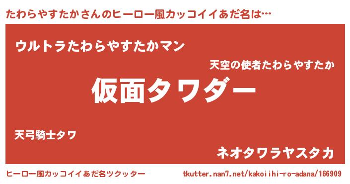 | 男性向けラノベタイトル風あだ名 | 『この素晴らしい世界にたわらやすたかを!』 |