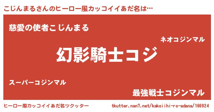 | 男性向けラノベタイトル風あだ名 | 『こじんまるの嫁は女の子じゃないと思った?』 |