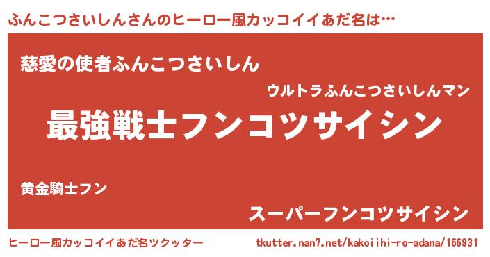 | 胡散臭い通販商品みたいなあだ名 | 『テレビで話題のアガリクス…その名も「ふんこつさいしん」』 |