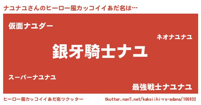 | ファンタジー風あだ名 | 『ファントムナユス』『ヴァルナユーナ』 |