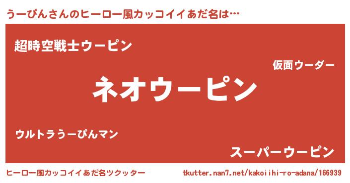 | 意味不明あだ名 | 『永久保存うーぴん』『自称うーぴん』 |