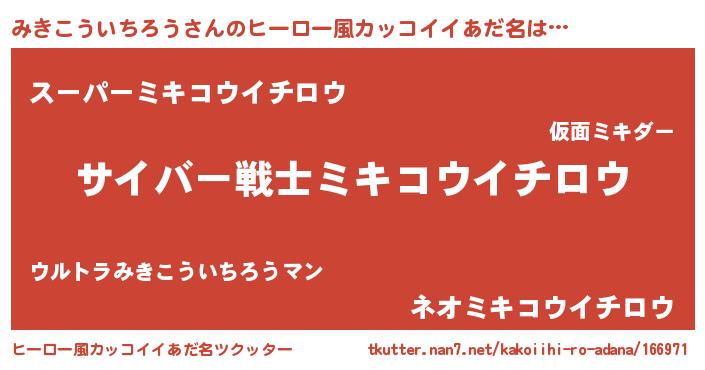 | 女子向けラノベタイトル風あだ名 | 『みきこういちろうアンティーク』 |