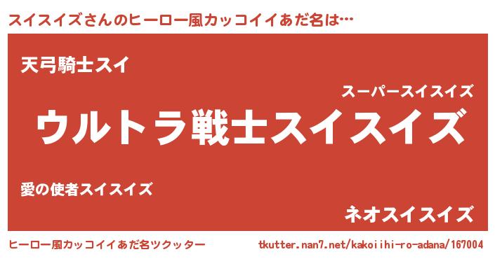 | 意味不明あだ名 | 『自称スイスイズ』『永久保存スイスイズ』 |