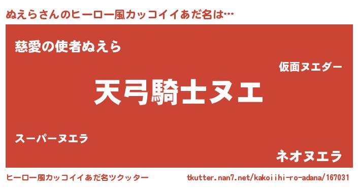 | 女子向けラノベタイトル風あだ名 | 『ぬえら様がみてる』 |