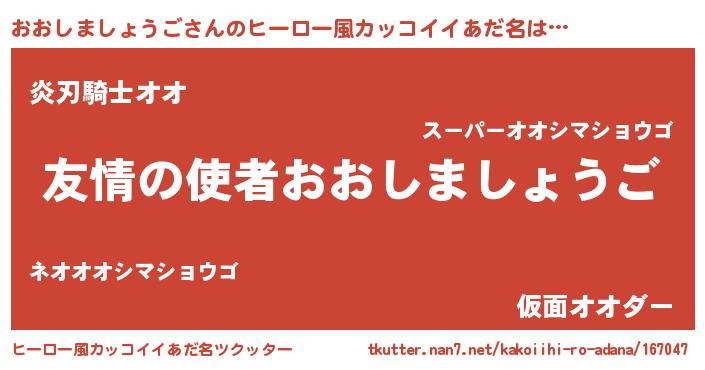 | 男性向けラノベタイトル風あだ名 | 『はたらくおおしましょうごさま!』 |