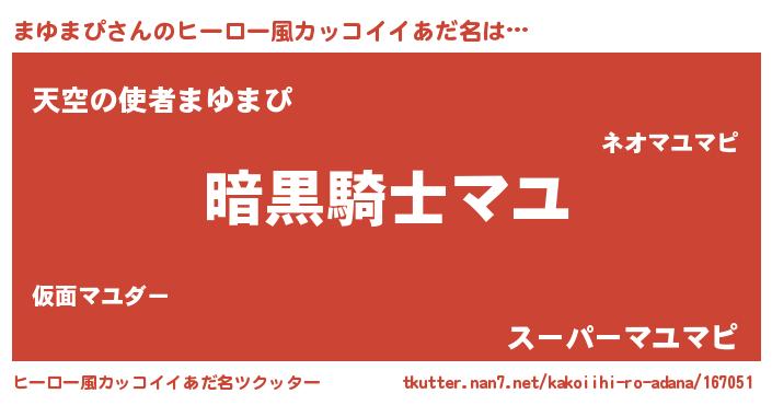 | 女子向けラノベタイトル風あだ名 | 『まゆまぴは平凡を望む』 |