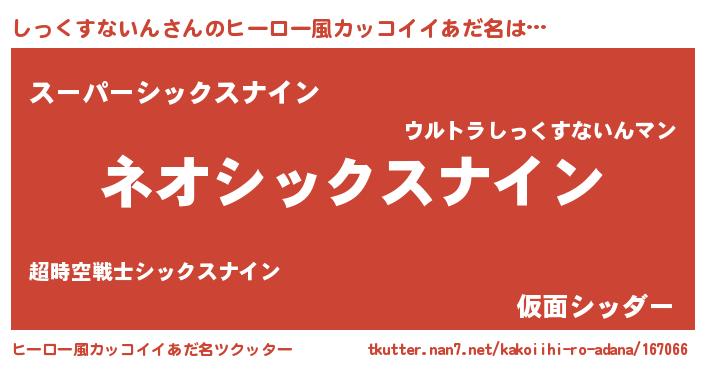 | 伝説のあだ名 | 『古より伝わる勇者しっくすないん』 |
