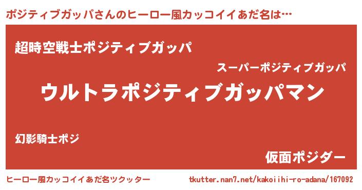 | 意味不明あだ名 | 『ポジティブガッパフォーエバー』 |