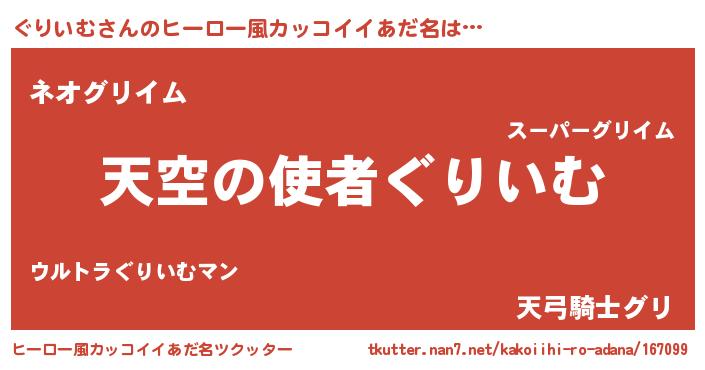 | ヘコむあだ名 | 『ぐりいむ(小並感)』『ぐりお』 |