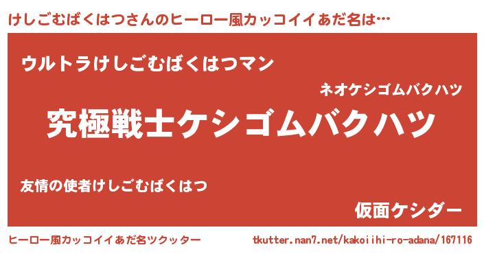 | 意味不明あだ名 | 『自称けしごむばくはつ』 |