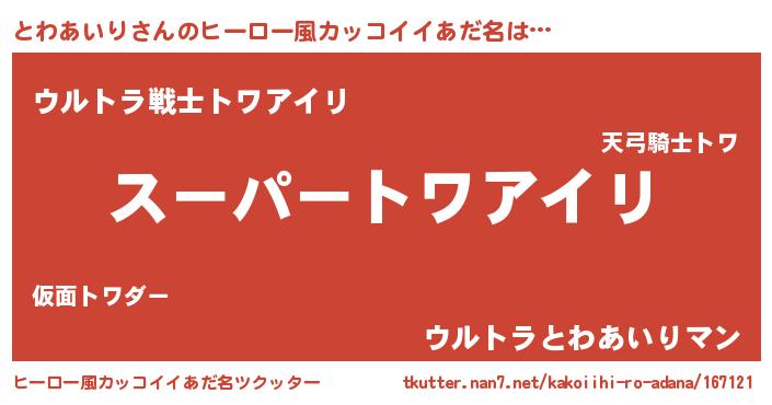 | 胡散臭い通販商品みたいなあだ名 | 『億万長者になれる水晶球…その名も「とわあいり」』 |