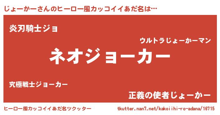 | 男性向けラノベタイトル風あだ名 | 『誰もが恐れるあのじょーかーが、ぼくの専属メイドになるようです。』 |