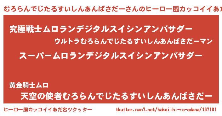 | 胡散臭い通販商品みたいなあだ名 | 『必ず成功する水晶球…その名も「むろらんでじたるすいしんあんばさだー」』 |