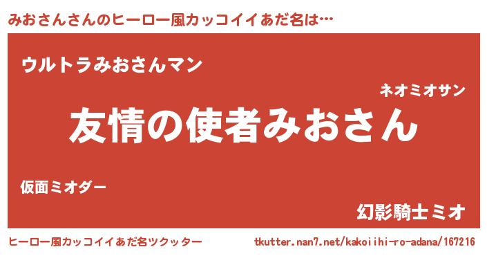 | ヘコむあだ名 | 『牛乳』『みおお』『みおさん(苦笑)』 |