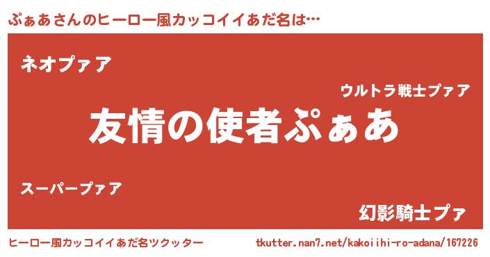 | 女子向けラノベタイトル風あだ名 | 『首の姫と首なしぷぁあ』『ぷぁあ恋絵巻』 |