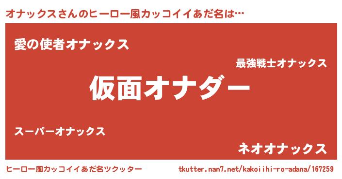 | 意味不明あだ名 | 『住所不定無職オナックス(5歳)』 |