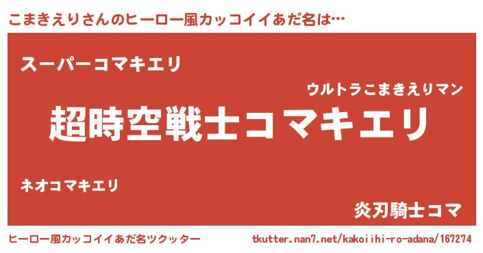 | 女子向けラノベタイトル風あだ名 | 『こまきえりなんてお断りですっ。』 |