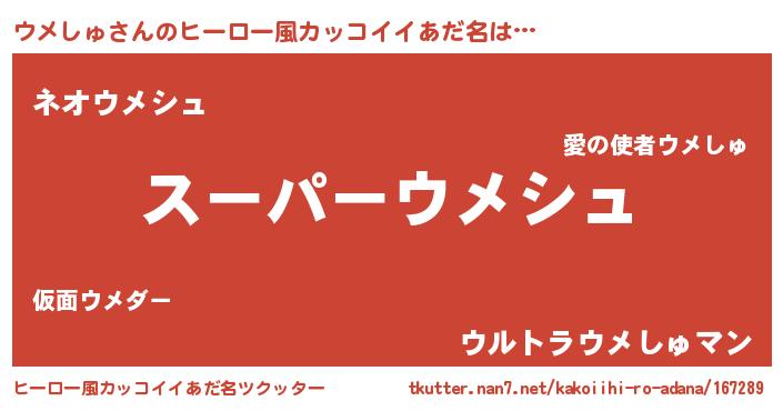 | 男性向けラノベタイトル風あだ名 | 『ウメしゅの憂鬱』 |