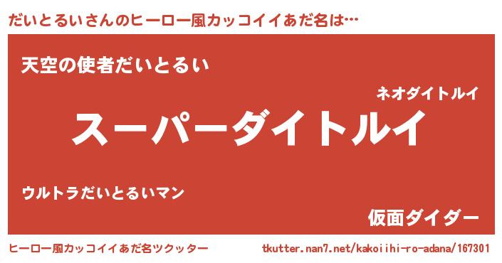| 男性向けラノベタイトル風あだ名 | 『だいとるいの憂鬱』 |