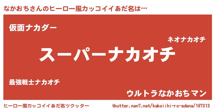 | 男性向けラノベタイトル風あだ名 | 『なかおちの憂鬱』 |