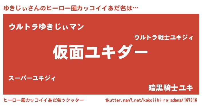 | 男性向けラノベタイトル風あだ名 | 『この素晴らしい世界にゆきじぃを!』 |
