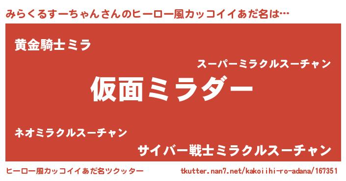 | 料理風あだ名 | 『みらくるすーちゃんのカルパッチョ風』 |