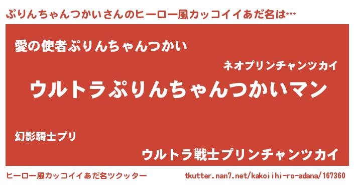 | 男性向けラノベタイトル風あだ名 | 『転生したらぷりんちゃんつかいだった件』 |