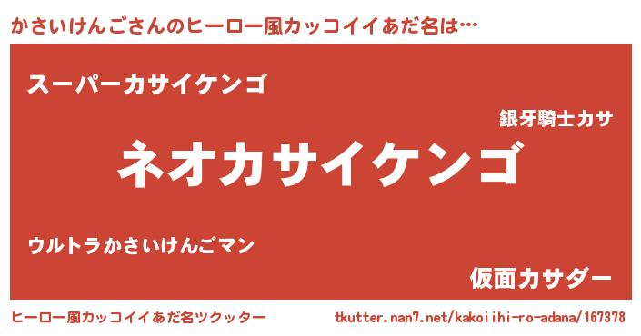 | ヘコむあだ名 | 『かさいけんご(笑)』『かさにー』 |