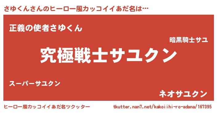 | 男性向けラノベタイトル風あだ名 | 『Re:さゆくんから始める異世界生活』 |
