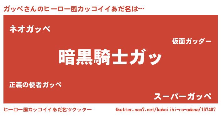 | 男性向けラノベタイトル風あだ名 | 『ガッペスレイヤー』 |