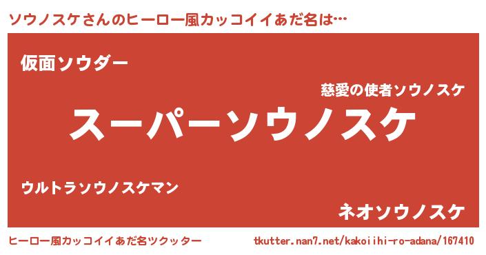 | 伝説のあだ名 | 『伝説のスナイパーソウノスケ』 |