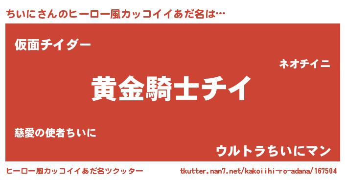 | 自動車の名前っぽいあだ名 | 『チルトイパン』『チウディ』『チンR』 |