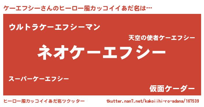 | 意味不明あだ名 | 『永久保存ケーエフシー』 |