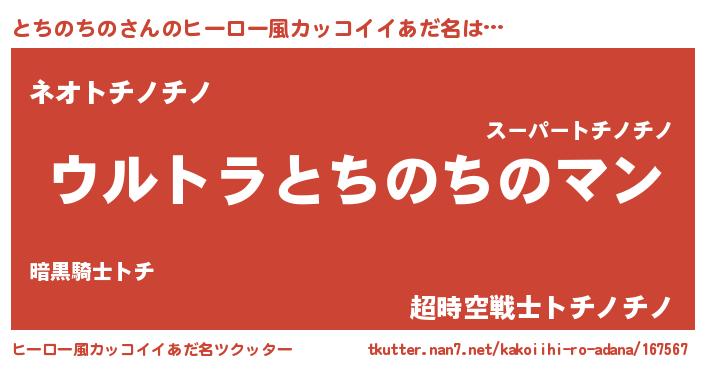 | 男性向けラノベタイトル風あだ名 | 『とちのちのに滅ぼされるだけの簡単なお仕事です』 |