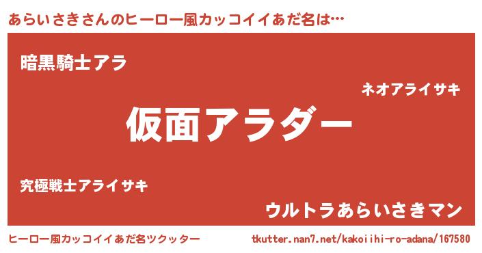 | 胡散臭い通販商品みたいなあだ名 | 『あなたにだけ特別に提供する世界で10本だけ現存している希少なブランデー…その名も「あらいさき」』 |