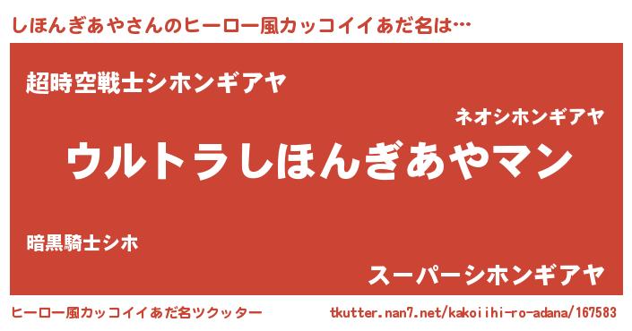 | 欧米人風あだ名 | 『しほんぎあやクリステル』 |
